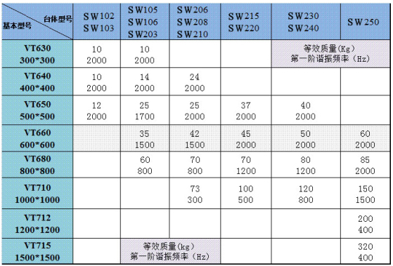 c、等效质量和使用频率范围均代表铝制垂直平台,镁制平台等效质量下降为同型号铝制平台的65%,使用频率范围下降为同型号铝制平台的90%。